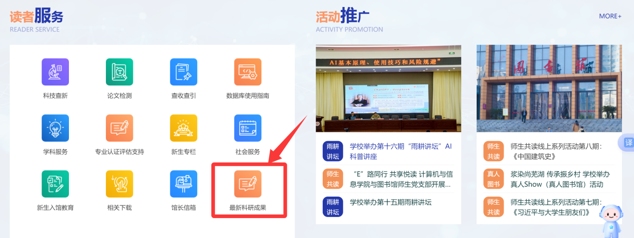 本网讯 为促进我校学术成果的传播与交流,为师生提供更加便捷的学术资源获取渠道,图书馆首次开展教师“最新科研成果”展示,在图书馆网站增设“最新科研成果”栏目,并进行动态调整和更新。这一全新栏目集中展示了我校在科研领域的多项成果,涵盖 SCI论文、ESI报告、专利、科研项目、专著等多个方面,为师生搭建了一个全面、权威的学术成果展示平台。
