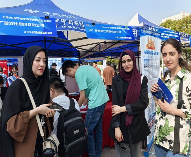 本网讯 3月26日,国际教育学院组织在校留学生参加了由学校主办的2025届毕业生春季就业双选会。此次双选会吸引了来自全国各地的200余家企业齐聚一堂,覆盖机械工程、电气工程、计算机科学、生物工程、经济学等多个专业领域,为毕业生与用人单位搭建起了一座高效对接的桥梁。