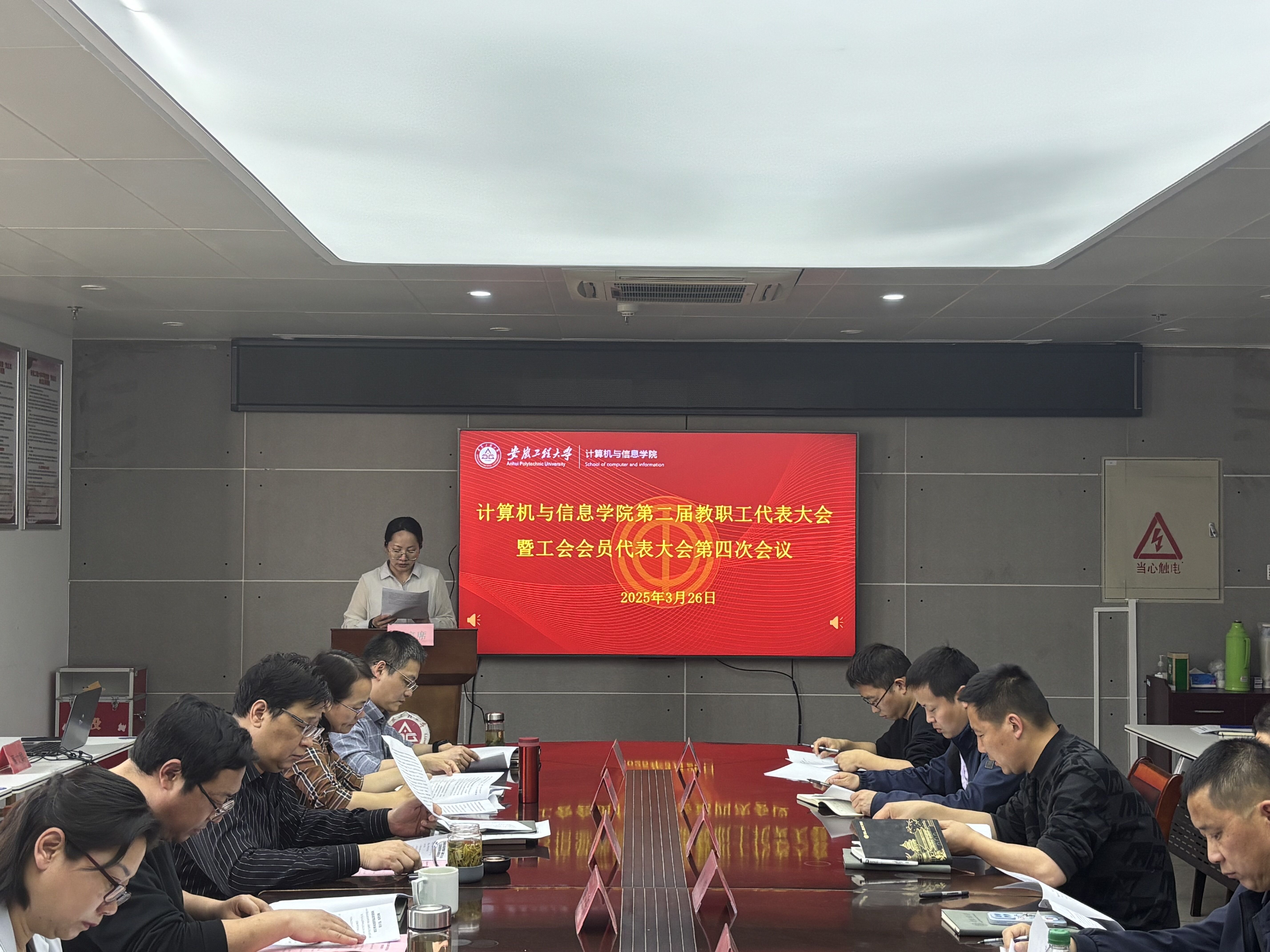本网讯 3月26日,计算机与信息学院第二届教职工代表大会暨工会会员代表大会第四次会议在C座622会议室召开。学院全体代表参加会议,大会分别由学院党委书记李卫东和院长汪军主持。