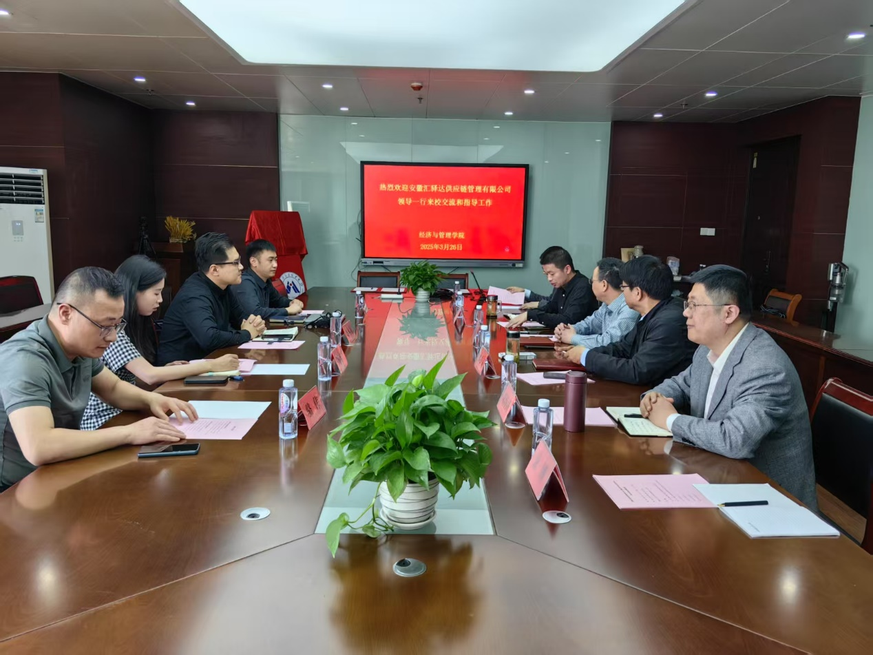 龚本刚代表经济与管理学院向汇驿达公司一行四人表示热烈欢迎,并简要介绍了学院的历史沿革、学科建设、专业发展和人才培养等情况。他表示,经济与管理学院历经四十余载发展,学院教师在智慧物流、供应链优化等方向取得了多项国家级和省部级科研成果,与汇驿达公司的主营业务发展高度契合,未来合作潜力巨大,前景广阔。