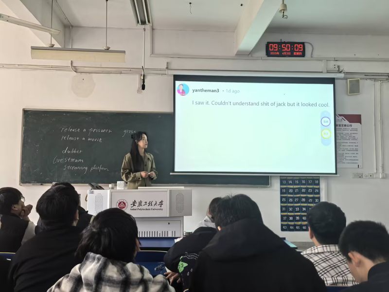 本网讯 为促进教师间的学习交流,推动课堂教学质量的提升,外国语学院于4月3日在6J202组织开展了“金彩一课”教学观摩活动,主讲教师为2024年“外教社杯”全国高校外语教学大赛教学设计国家二等奖获得者许文清老师。学院教学副院长李新国、学院各系部教师及其他学院教师代表参加了本次活动。