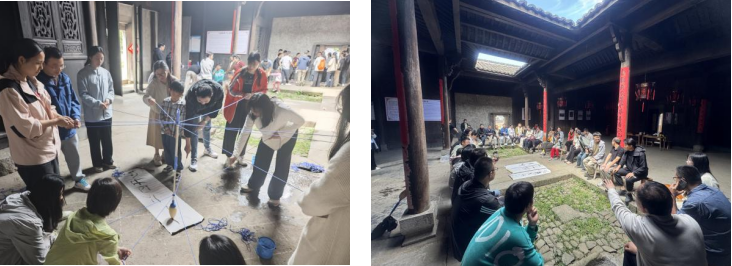 通过山野徒步、红色研学、文化体验、篝火晚会等形式,学员们深入感受革命精神与乡村振兴成果,在实践中增强团队凝聚力。学员们先后参观了九峰村古建筑“大夫第”、叶挺将军纪念碑,了解到了皖南事变背后的故事,感悟先烈精神,并结合乡村振兴主题展开研讨交流,以一场别具意义的“神笔马良”团队协作活动,为本次素质拓展画上句号。两天的活动中,学员们不仅领略了皖南山水的生态之美,更通过红色足迹寻访、文化实践和团队协作挑战,深化了对责任担当与协作精神的理解。