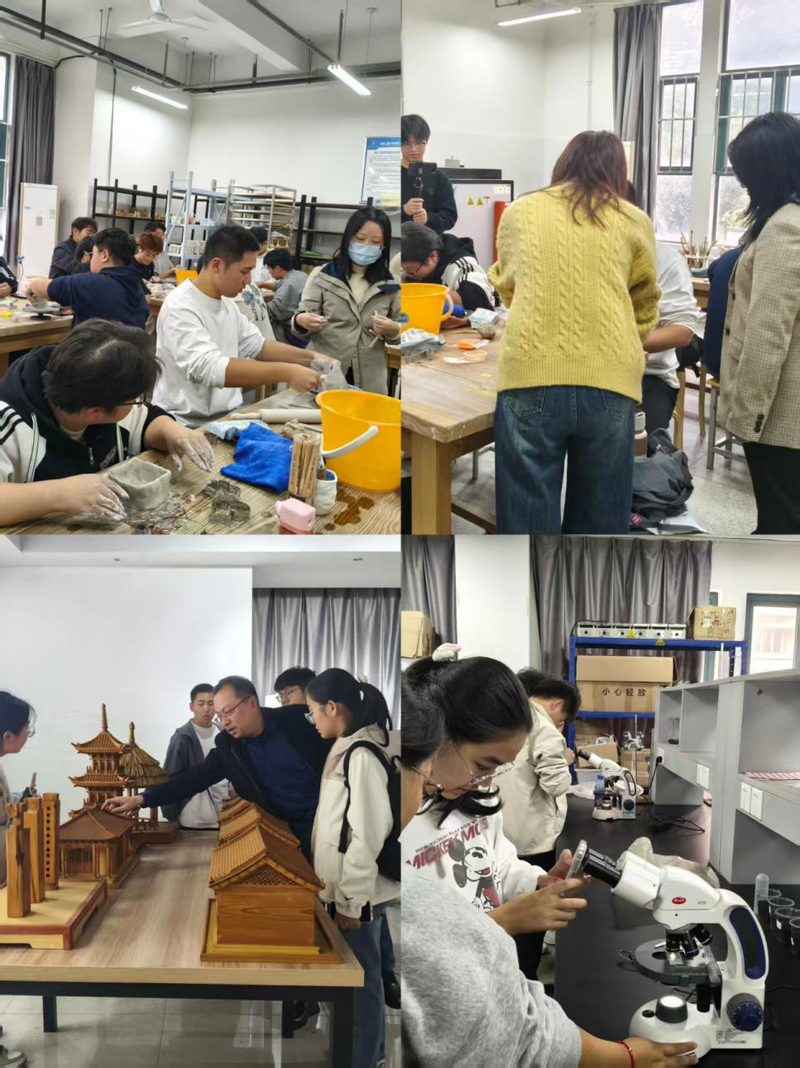 本次活动以实验室资源为核心载体,分班级、分时段有序推进,为新生打造“一站式”专业认知平台。C120实验室的陶艺塑型体验与C224实验室的木工体验,让新生亲手参与手工创作与空间构建,近距离感受建筑领域“从无到有”的创造过程;C203实验室聚焦环境与检测方向,设置“微观侦探营”与“一杯湖水的逆袭”特色环节;C209实验室通过桥梁、建筑缩尺模型展示,直观呈现专业核心原理;C405智能建造创新创业中心则集中展示行业前沿技术,形成了“认知原理+手动实践+前沿探索”的完整体验链条。