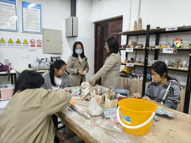 为确保活动高效推进,学院建立“专项联系人+学长导员+领导参与”的三级保障机制。俞梦璇老师负责C120、C224实验室协调,孙俊伟老师、周华聪老师、杨丽老师分别对接C203、C209、C405实验室,全程提供专业指导;学长导员曹博凯带领新生互动交流,深化专业理解;学院党委副书记吴敏参与木工、陶艺体验环节,与新生共话专业发展,让新生在认知体验中增强对学院专业的认同感。