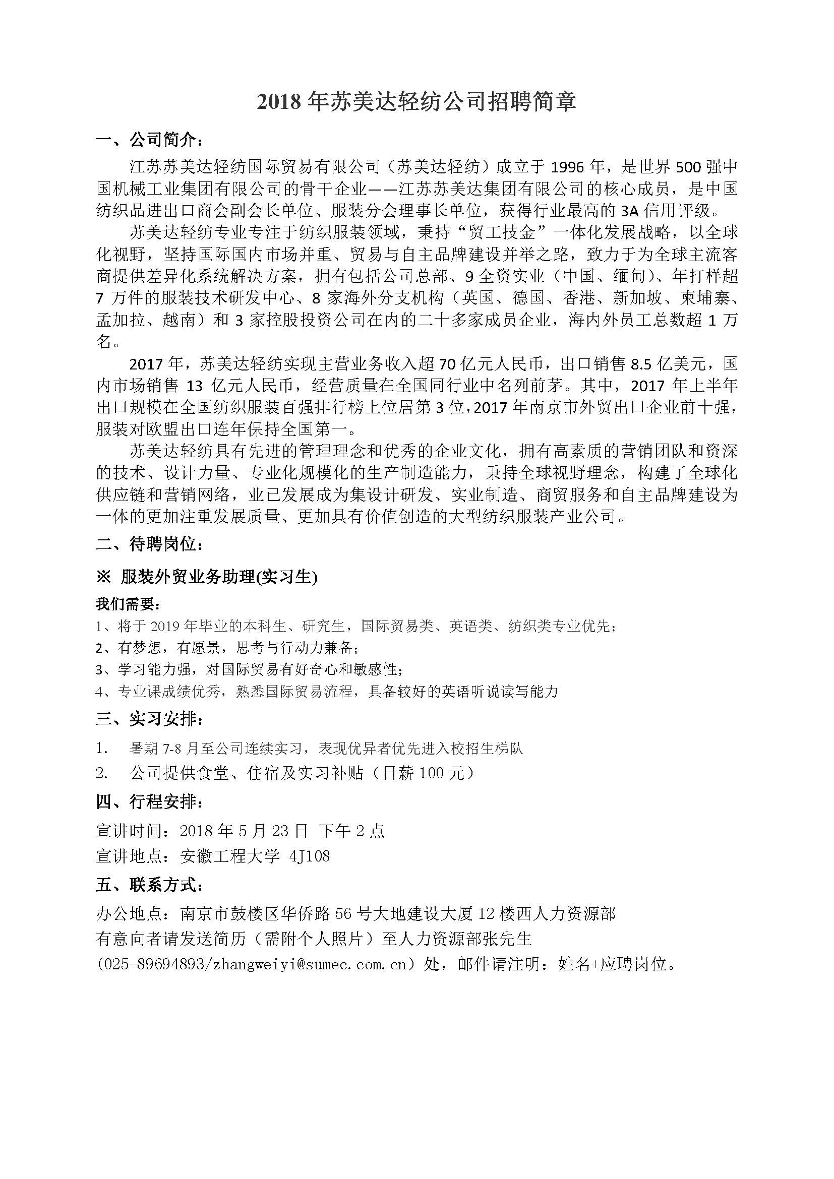 江苏苏美达轻纺国际贸易有限公司宣讲通知