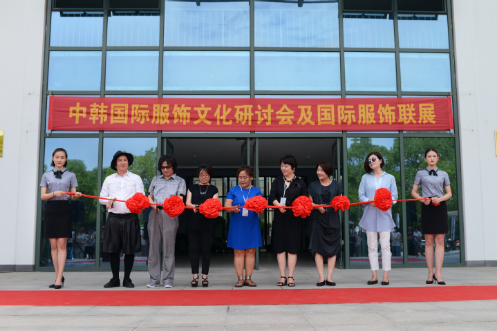 27日上午,“2018年中韩国际服饰文化交流研讨会及国际服饰联展”开幕式在C座举行,韩中服装产学协会会长李英宰、韩中服装产学协会副会长洪美貞、韩中服装产学协会理事长簡鎬涉、韩中服装产学协会常务顾问裴水晶、蒙古国·文化艺术大学教授孟克琪琪格、艺术学院院长黄凯教授、纺织服装学院副院长袁惠芬教授、孙玉芳副教授以及宿州学院、安徽师范大学皖江学院、安徽职业技术学院、淮北职业技术学院等多个兄弟院校代表参加开幕式并进行剪彩仪式。开幕式由纺织服装学院教授邬红芳主持,开幕式上中韩代表分别致辞。