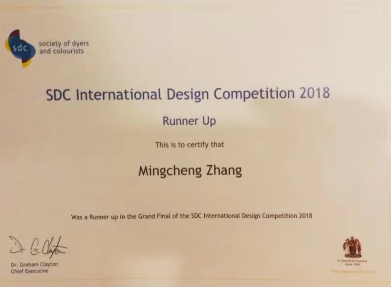 11月26日,由英国皇家染色学会主办的“着色未来”色彩设计大赛国际总决赛在英国伦敦举行,纺织服装学院服装与服饰设计专业2015级张铭成同学的作品“筚路蓝缕”从全球14个国家和地区的作品中脱颖而出,喜获亚军的好成绩。