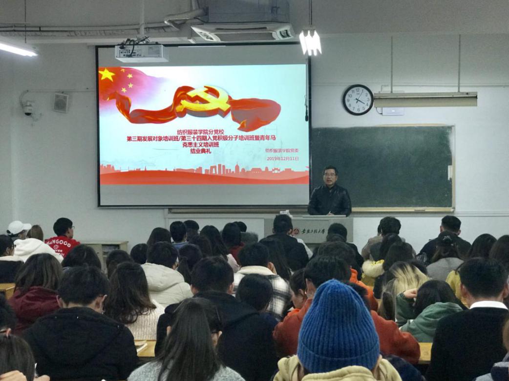 1211日下午,纺织服装学院于四教211教室举行分党校第三期发展对象培训班、第三十四期入党积极分子培训班及院第三期“青年马克思主义工程”大学生骨干培训班结业典礼。学院党委副书记、分党校副校长孙宏义,团委书记陈倩参加了结业典礼,典礼由党校培训班班主任张旭老师主持。
