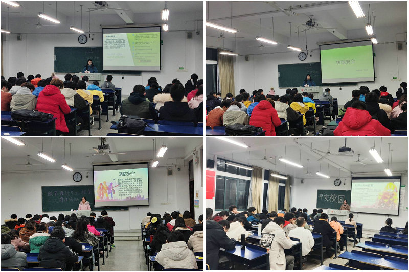 12月10日下午,院团委郑玉星在6教501带领服表191和服设191的同学从食品安全、交通安全、消防安全和防骗安全四个方面进行深入的学习,让同学们认识到校园安全的重要性,讲述了如何预防安全问题的发生,并针对食品中毒、初期火灾、校内外突发的交通事故等紧急情况介绍了相应的应急措施。