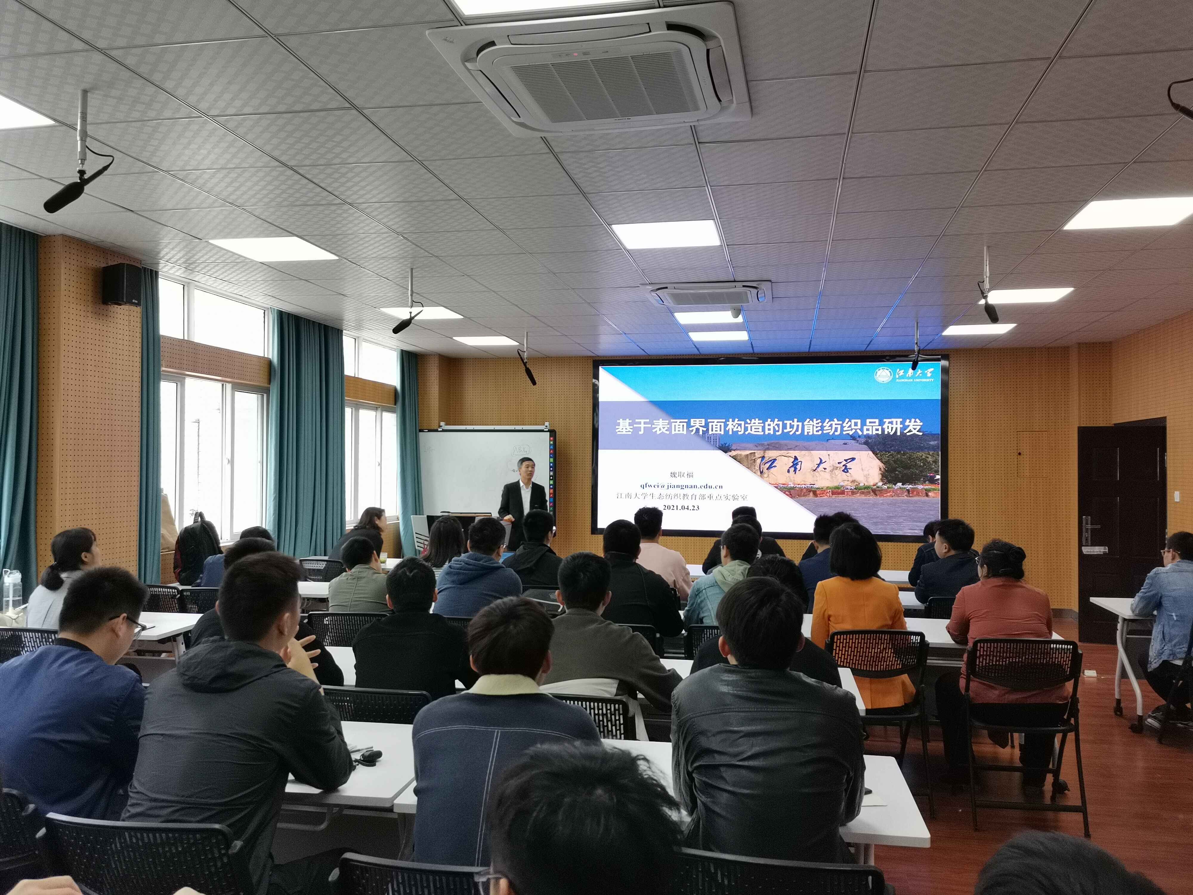 4月23日上午,纺织服装学院第4期博士论坛在D座601举行,学院部分教师和研究生参加了本次论坛。论坛由副院长徐珍珍主持,本场论坛特邀江南大学教授魏取福教授、我院青年教师张瑾博士、许青波博士分别作了学术报告。
