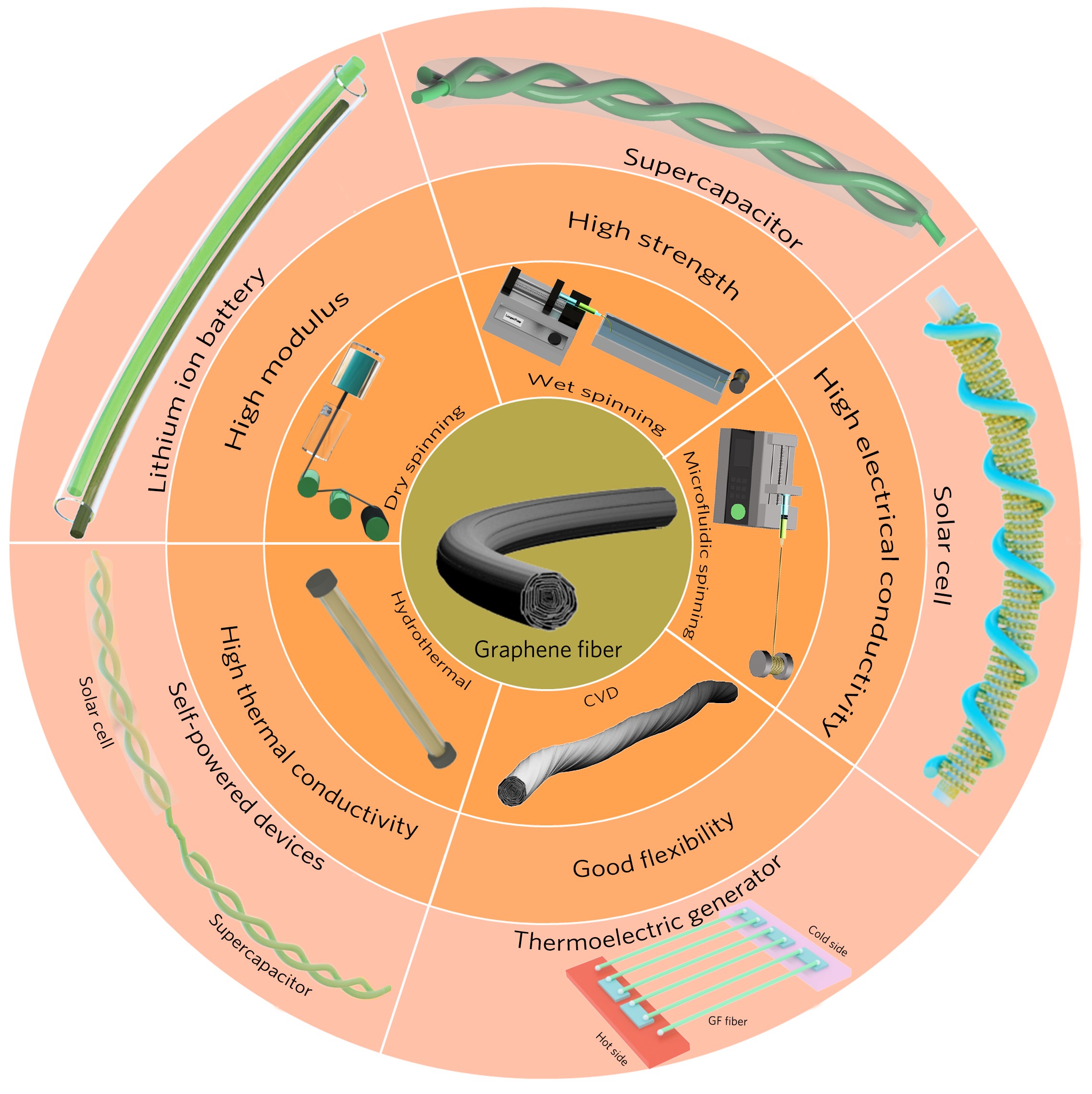 此外,以郑贤宏博士为第一作者、李长龙教授为通讯作者在中科院1区TOP期刊Materials & Design发表题为“Graphene-based fibers for the energy devices application: A comprehensive review”特邀综述文章,论文综述了近年来石墨烯纤维微观结构和性能调控机制以及能源应用的最新进展,并针对石墨烯纤维的发展和应用瓶颈进行展望。