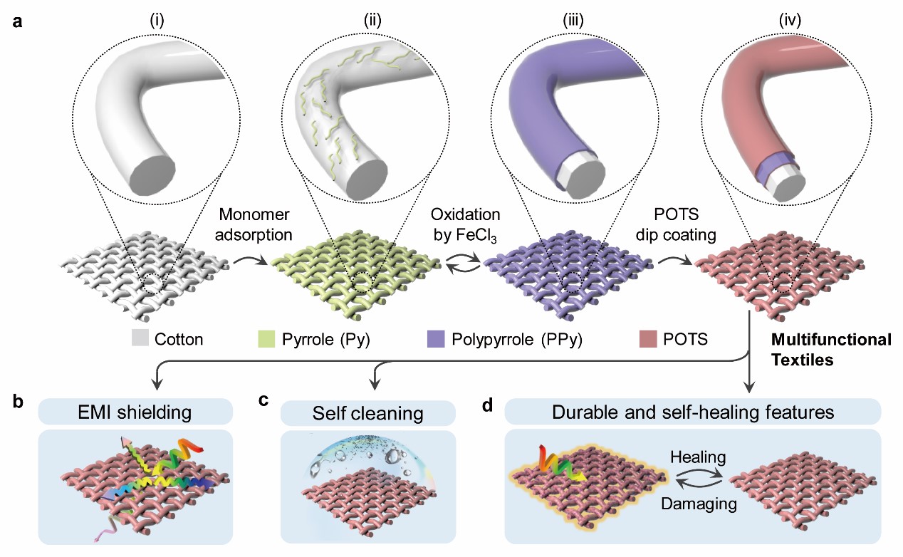 材料电磁屏蔽性能的耐久稳定性对电子产品的正常工作及人体健康具有重要意义。为有效提高纺织品电磁屏蔽材料的耐久稳定性,我校纺织服装学院功能复合材料团队通过长期研究,在织物表面构筑导电高聚物和低表面能保护层来制备电磁屏蔽纺织品,当其外表防护层遭到破坏时,借助微波加热(仅4s)即可自修复,且该自修复过程可重复多次,为设计与构筑耐久稳定的电磁屏蔽纺织品提供了新的思路和方法。该研究成果近期发表在中科院1TOP期刊《Nano-Micro Letters》(IF=16.419)上,论文题目:Near-instantaneously self-healing coating towards stable and durable electromagnetic interference shielding,纺织服装学院邹梨花博士为第一作者、徐珍珍教授为通讯作者,日韩欧美福利视频_黑人巨大人精品欧美三区_欧美成人另类人妖_欧美在线精品一区二区三区_欧美一区二区三区性视频_日韩精品欧美视频_性欧美极品xxxx欧美一区二区为第一单位。(论文链接:https://pubmed.ncbi.nlm.nih.gov/34498197/