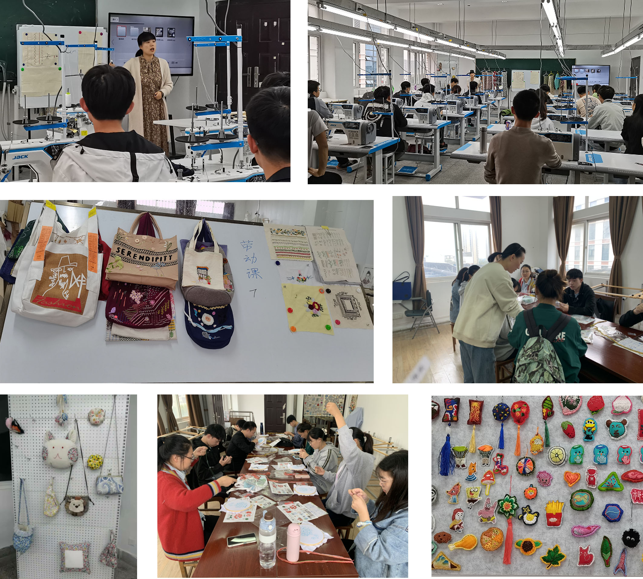 纺织服装学院劳动教育基地,结合专业特色和传统技艺开设相关课程。通过我院劳动教育特色实践课程的开展,一方面有利于引导大学生树立正确的劳动价值观;另一方面可以帮助学生了解我国传统服饰文化;同时,也是对学生日常必备生活技能的专业训练与培养。