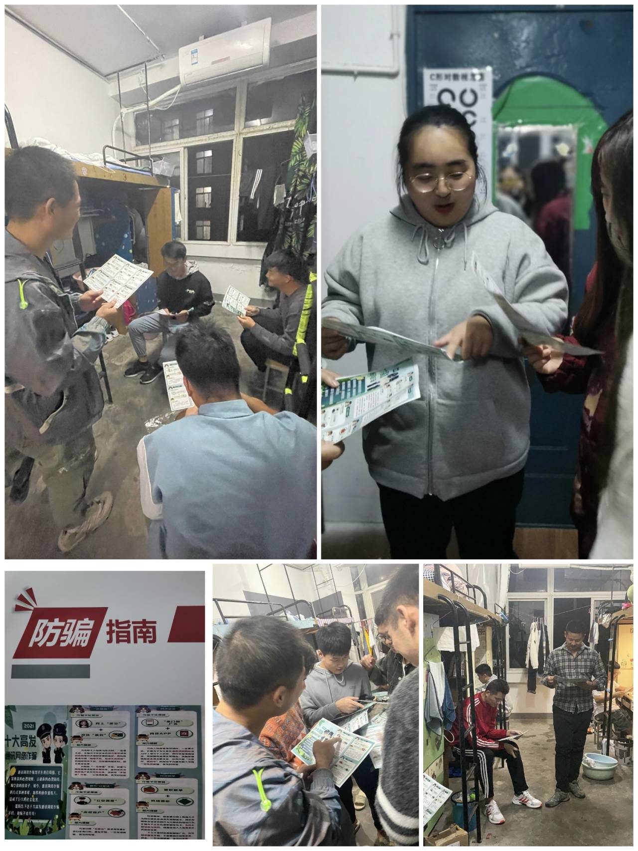针对近期校园新生被骗案件增多的情况,纺织服装学院轻化学生党支部于2021年10月23日至24日以我院新生寝室为单位开展防诈骗宣传活动。