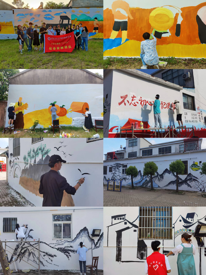 “画小匠”团队先后赴弋江区新山村、新联村、无为县都督村开展墙体彩绘活动。小画匠们紧扣美化人居环境、丰富文化生活、推动乡村振兴等主题,有机融入优秀传统文化知识和地方特色风土人情,以白墙作画,用自己的画笔让生动形象的“文化墙”充当美丽乡村的“解说员”,传递向上、向善的正能量,进一步丰富居民的精神文化生活。
