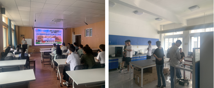 9月9日下午研究生党支部安排高年级研究生党员就角色转变、科研、学术交流等方面给新生做专题辅导,现场互动交流,并带领新生参观实验室,介绍各研究室研究方向和实验设备。通过交流、参观实验室,研究生新生们了解各个课题组的研究方向,对研究生阶段的学习情况和要求有了初步了解和认识,为他们今后的工作、学习和生活顺利进行打下了良好的基础。