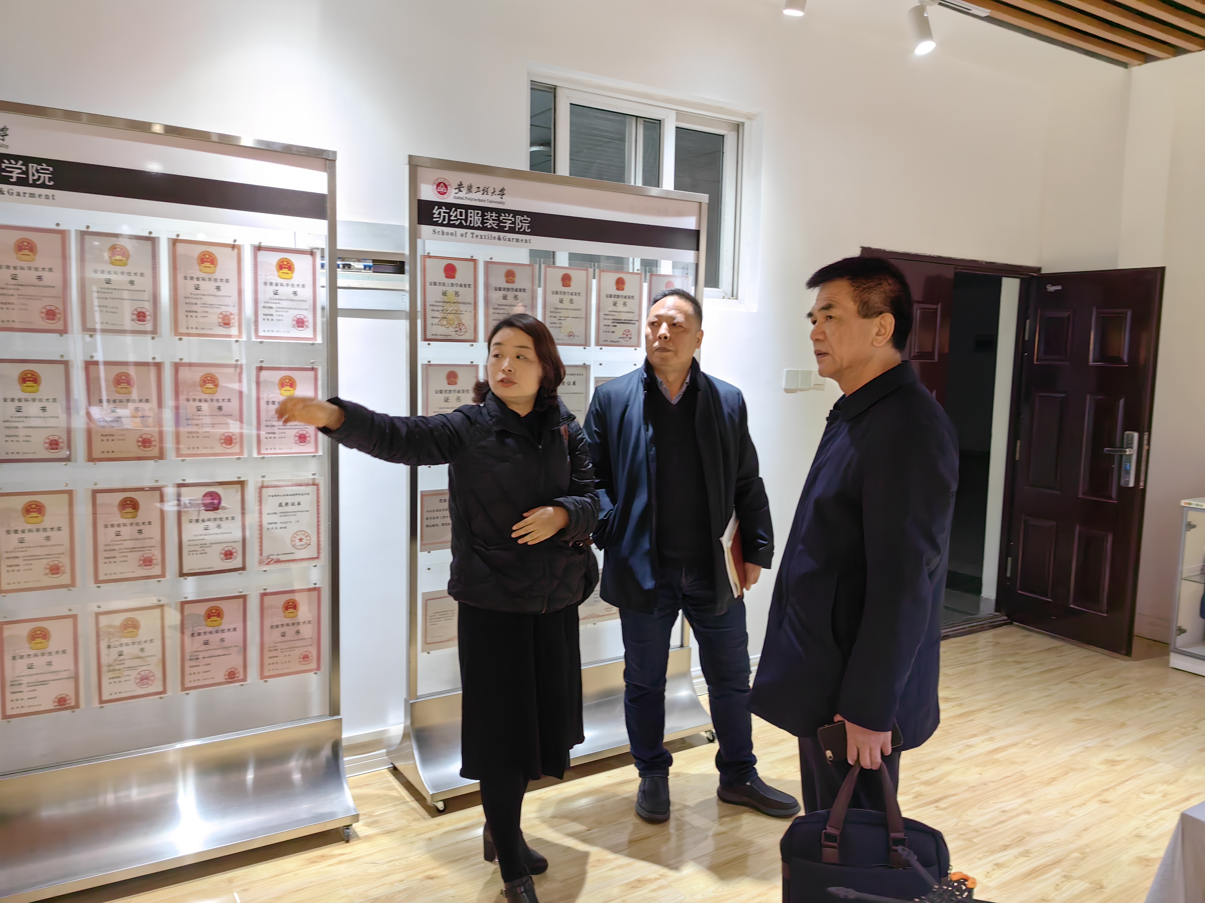卢平先后参观了纺织服装学院实验室、博士工作室、展厅,并与假期坚持在岗的教师们进行了亲切地交流。随后卢平一行与学院党政班子、系主任、教师代表等进行了座谈,听取了学院发展情况汇报。