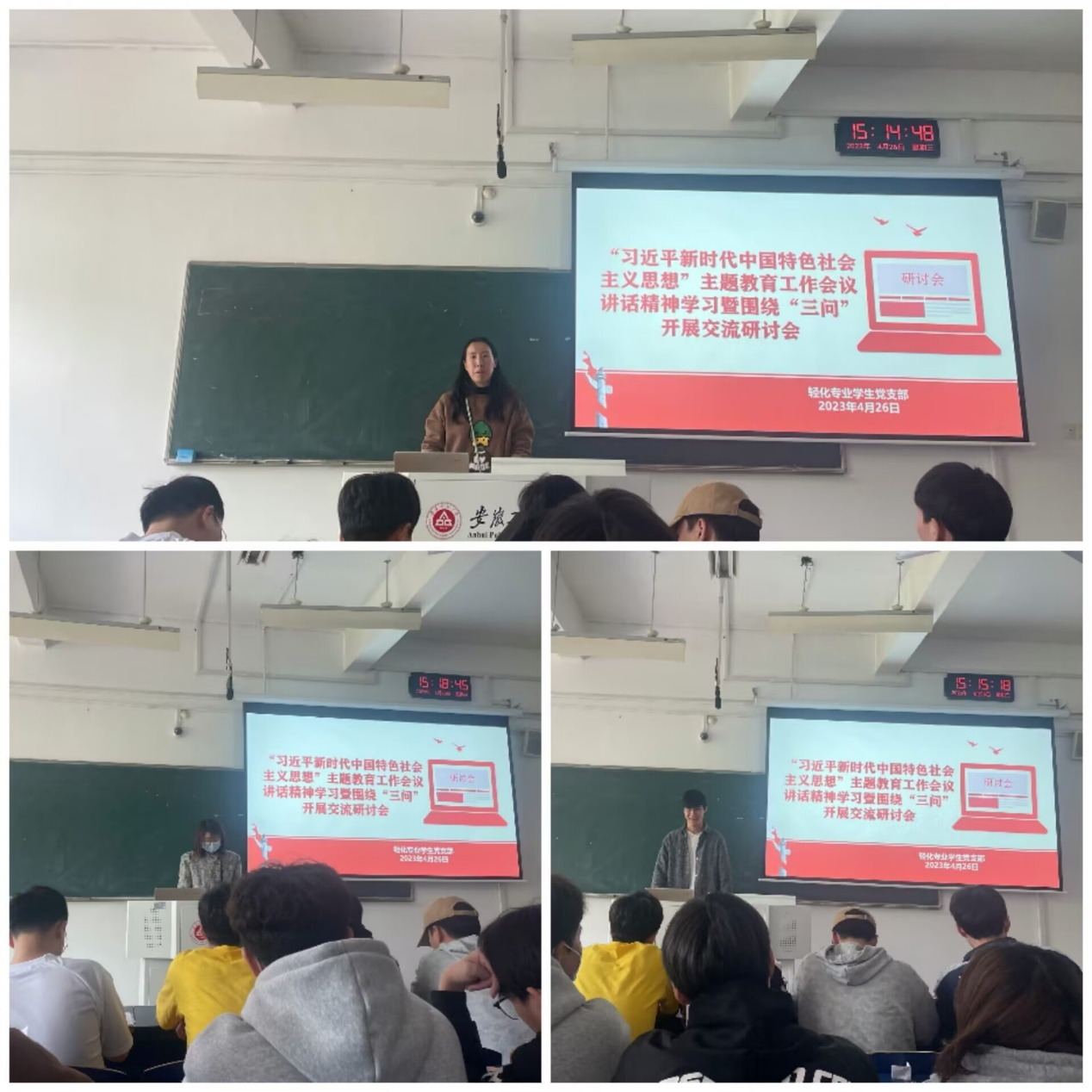 4月26日,纺织服装学院轻化专业学生党支部在6教101开展主题交流研讨,会议由支部书记童超梅主持,支部全体党员参加。