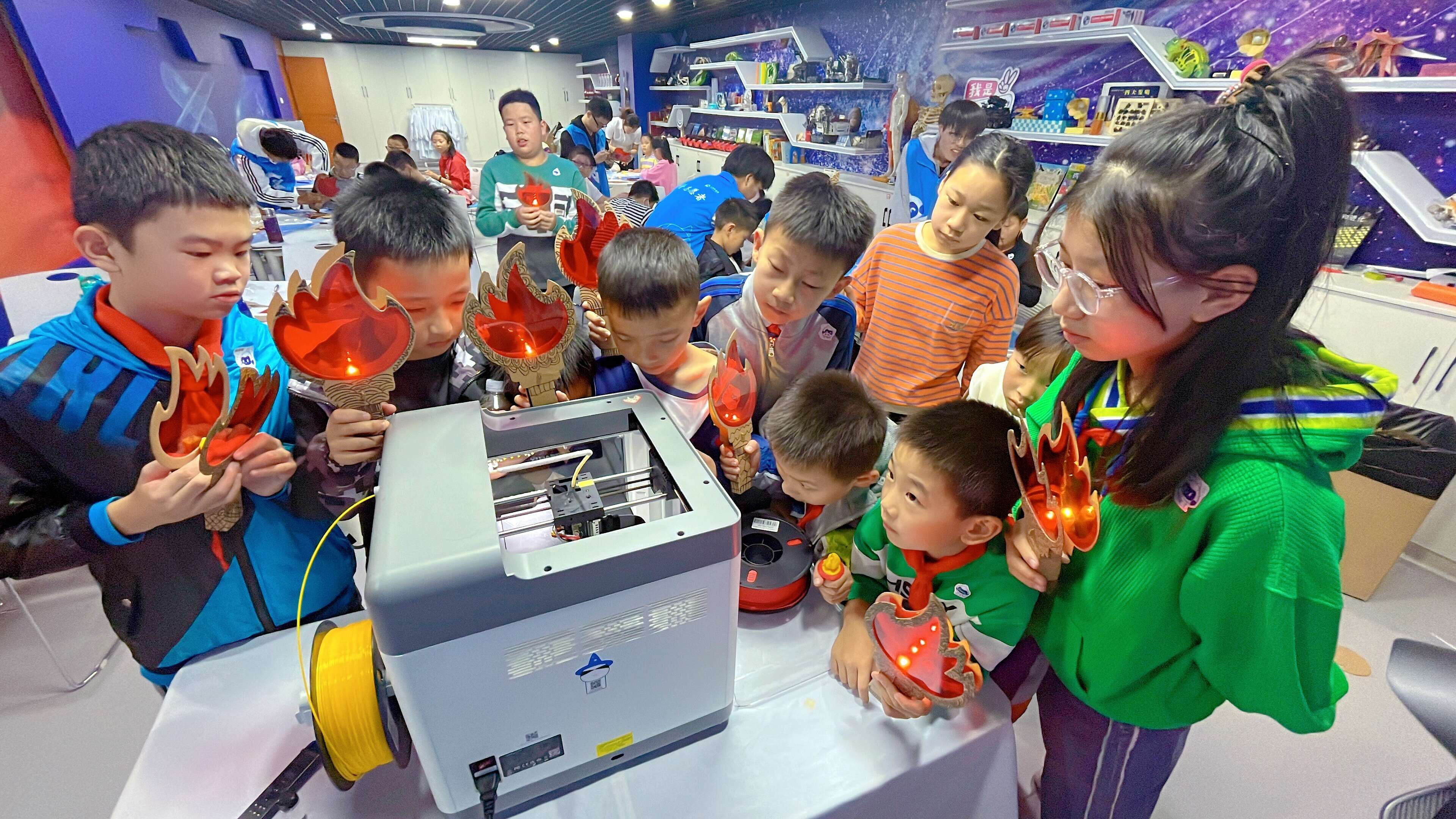 9月23日,纺织服装学院“行走的课程思政”公益团队赴芜湖科技馆开展“种下我的科技梦”馆校联动迎亚运特别活动。纺织专业教师党支部邹梨花老师带领研究生和本科生志愿者,以“童迎亚运,爱向未来——无所不能的3D打印”为主题进行科普宣讲及互动教学,让孩子们近距离体验3D打印技术。