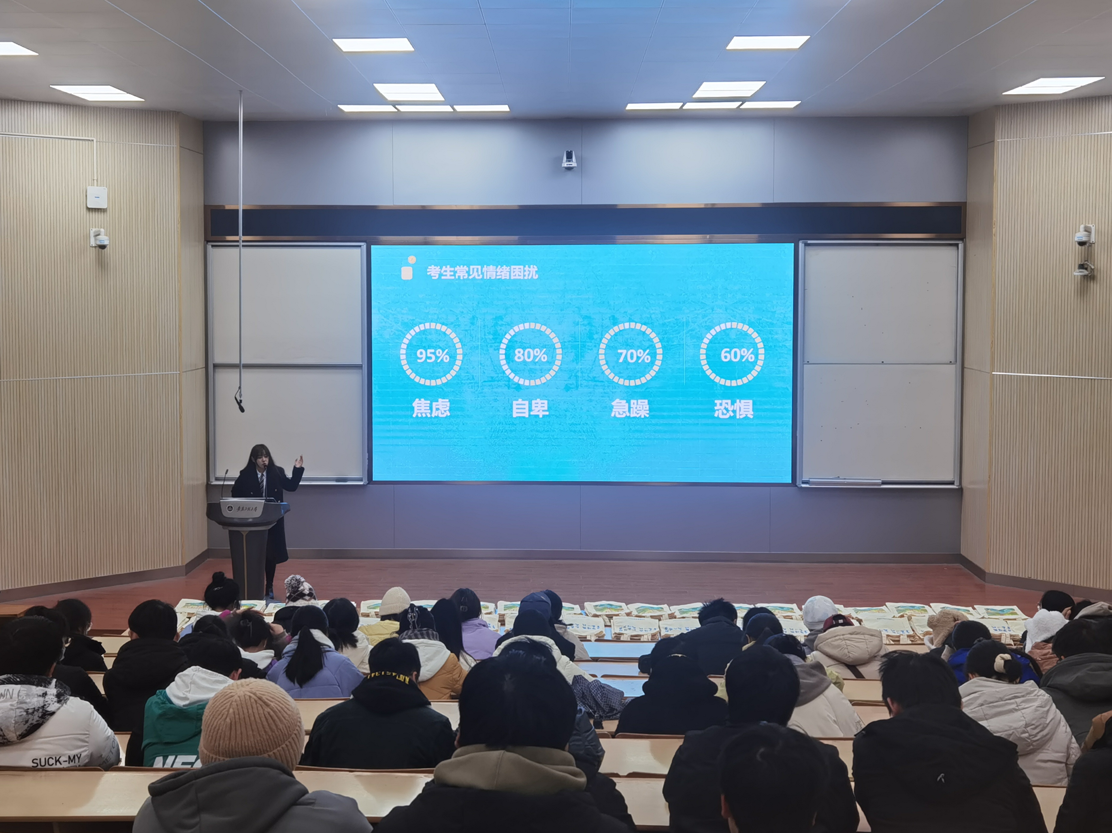 李梦圆从考研情绪困扰、心理减压和做好心理准备等方面展开分享,引导同学们在冲刺阶段要正确认知情绪,在考前出现焦虑状态是正常情况,适度的焦虑有助于大家提高学习效率,关键看如何调整自己的复习策略,调动自己的学习积极性。同时还详细介绍了备考时如何释放压力和情绪,结合“加法”“减法”来获得自信心,通过放松身心和合理宣泄等方式学会自我减压,并祝福大家一战成硕