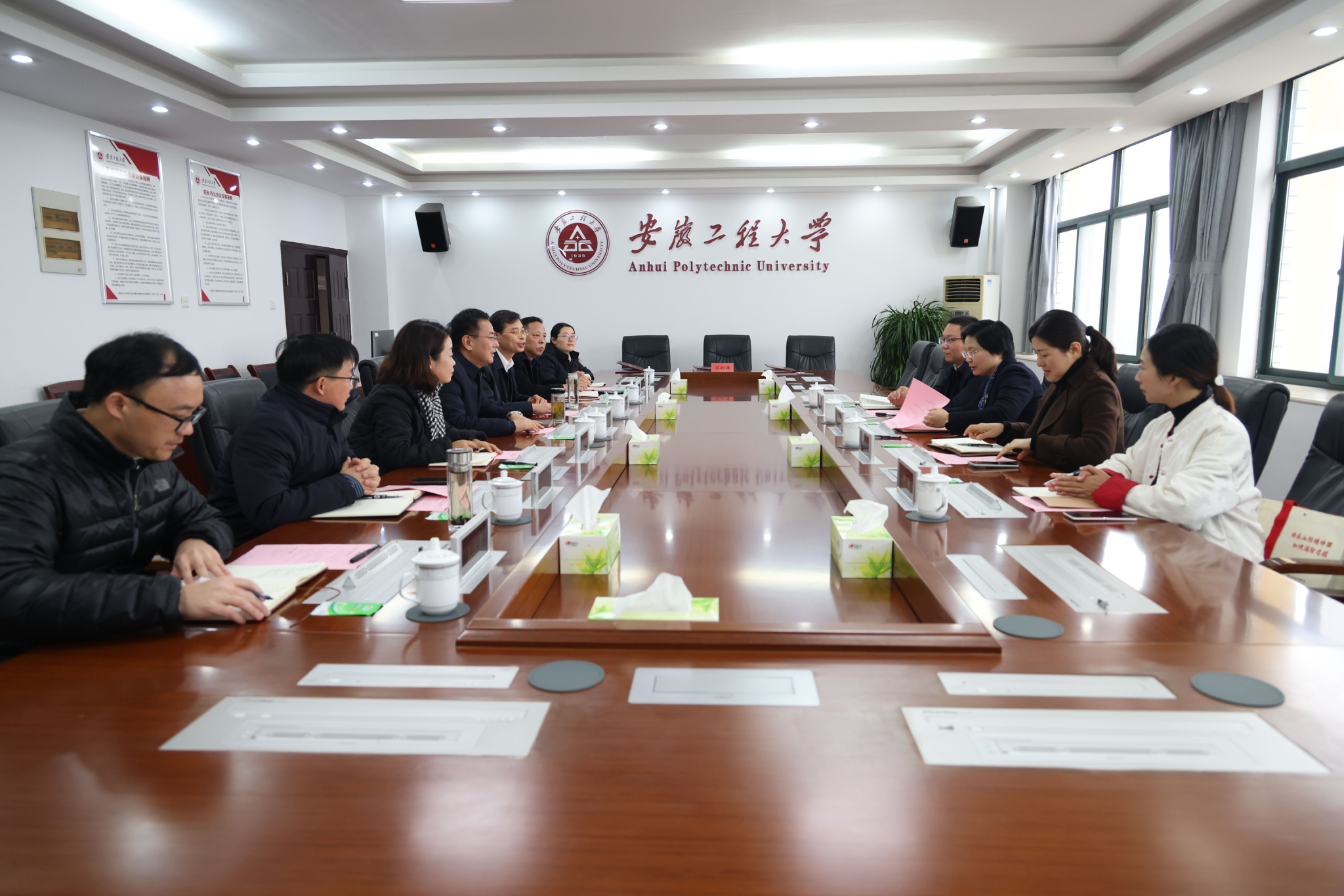 12月18日,湾沚区委常委、组织部长赵彗星,副区长缪青,陶辛镇党委书记汪火树,陶辛镇镇长濮成虎一行来校签署“大学小镇”(陶辛)共建合作协议。校党委副书记、校长黄友锐出席,办公室、社会合作处、科技处、纺织服装学院相关负责人参加。会议由社会合作处处长刘金斌主持。