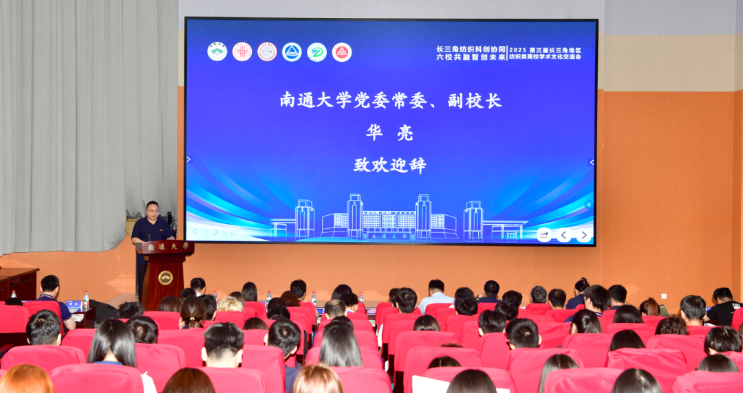 开幕式由南通大学纺织服装学院党委副书记、副院长汤小松主持。南通大学校党委常委、副校长华亮发表致辞,他对兄弟院校嘉宾的到来表示热烈欢迎,强调本次交流会是推动高校学术协同的重要实践。他呼吁六校充分发挥学科优势,通过深度交流探索纺织学科发展新路径,为行业创新注入活力。随后,南通大学纺织服装学院党委书记刘其霞以纺织学科百年发展历程为轴线,系统展示南通大学纺织服装学院在学科建设、科研创新、党建引领产业链发展等方面的突出成就,展现出深厚的学科底蕴与鲜明特色。