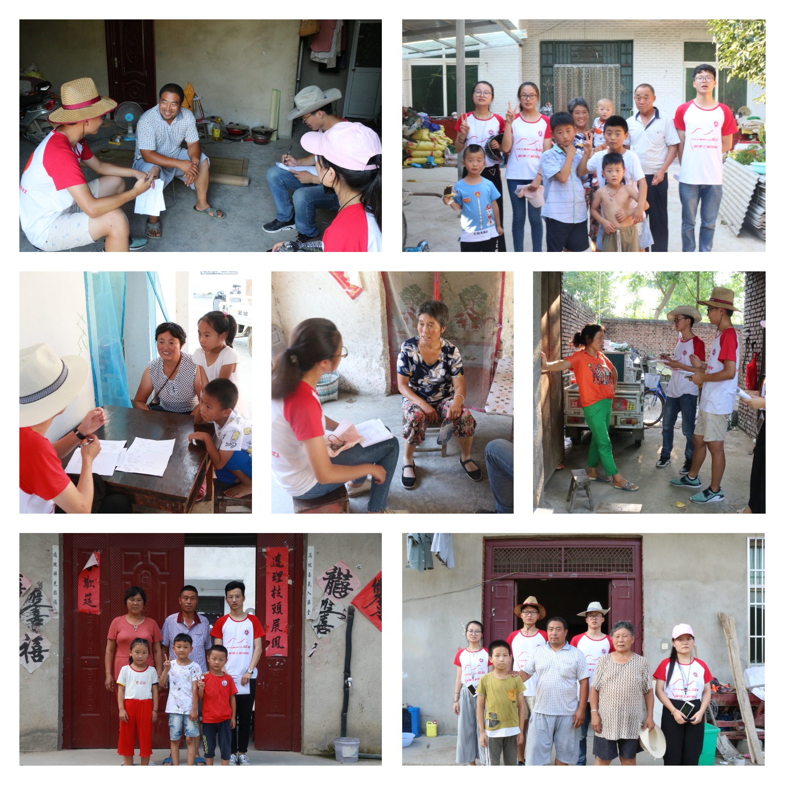 由于村里条件有限,支教的队员们有不少女生,为了大家的安全,支教的老师们都在镇上住宿,从镇上到村里,每天来回要跑二十多公里,天气炎热,雨水也较多,为了安全,队员们中午不能回去休息,便就近在小学旁边的村部自己做饭,困了就在教室的桌子上趴着睡一会。迎着朝阳,送走晚霞,支教的18天里,没有一个人觉得累也没有一个人觉得艰苦,每一天都是准时到达学校,送走最后一个孩子才离开。在支教的同时,团队成员利用放学时间,对每个孩子进行了家访,对孩子们的家庭情况、当地教育资源以及对此次支教的满意度等进行了调研。