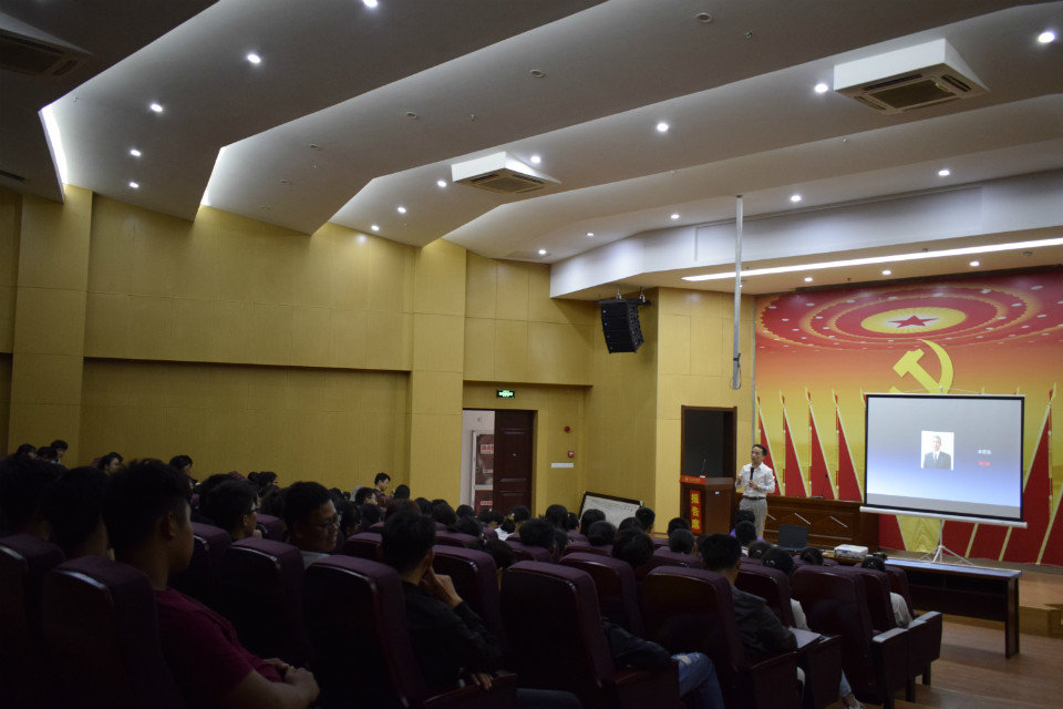 1024日下午15:30,管理工程学院创新创业大讲堂邀请江苏卡思迪莱集团执行总裁吴锋在C7楼报告厅开展讲座。学院党委副书记程繁及工商和人力的大一新生到场聆听报告。