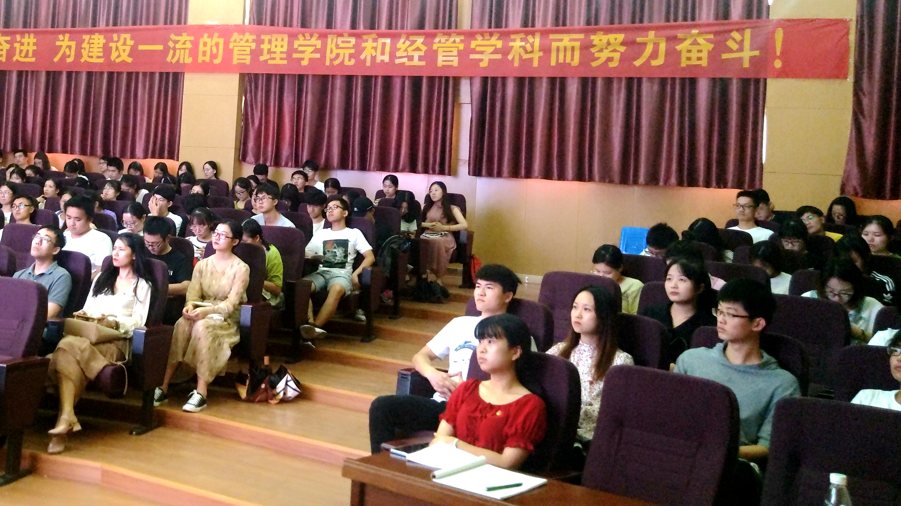 9月19日下午,管理工程学院在C座7楼报告厅举办“不忘初心、牢记使命”—开学第一课主题宣讲会,马克思主义学院虞满华老师应邀主讲,来自管理工程学院和数理学院的170多名学生党员到场聆听。
