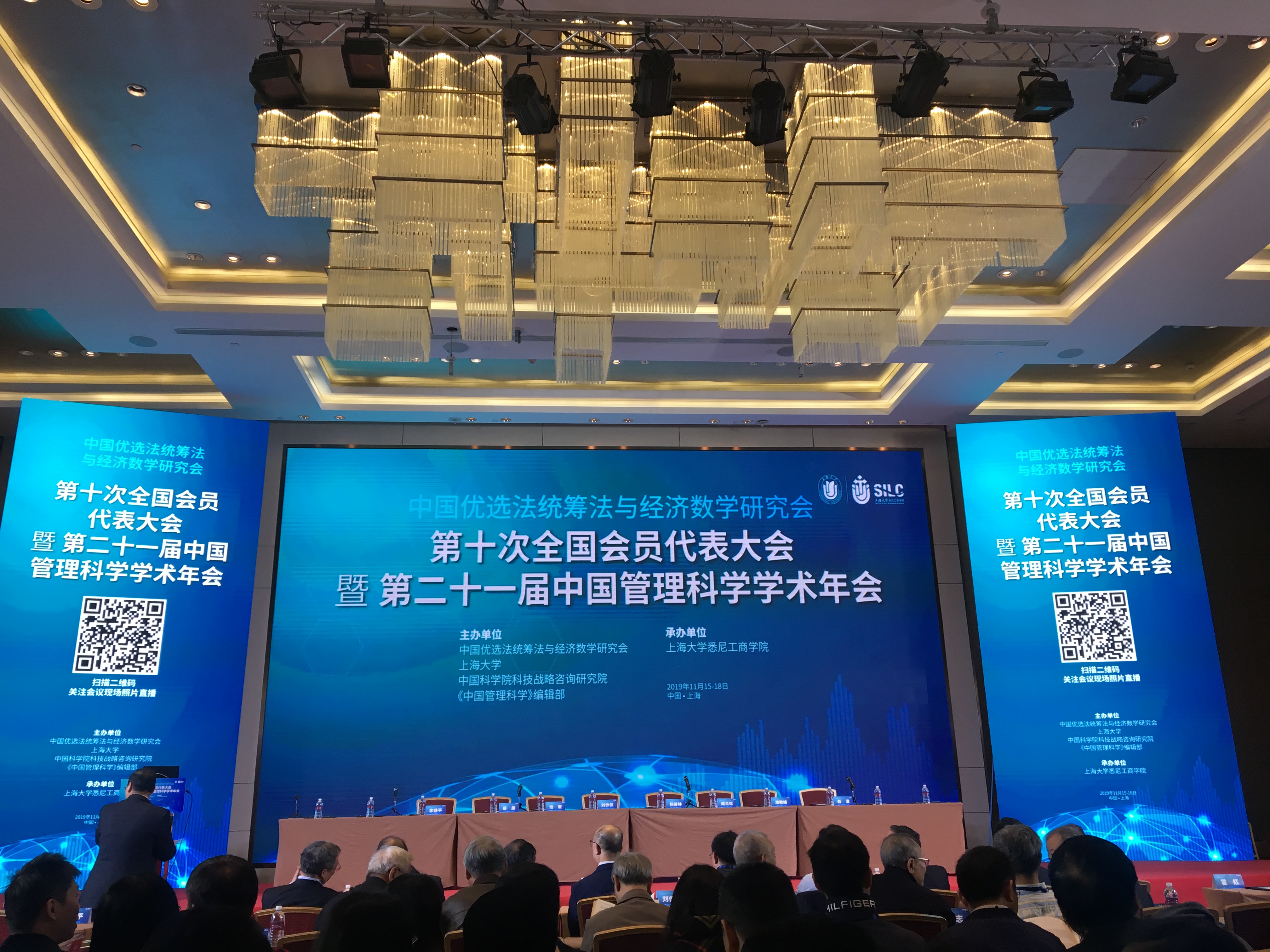 1115-17日,第二十一届中国管理科学学术年会在上海大学顺利举行。大会由中国优选法统筹法与经济数学研究会、上海大学、中国科学院科技战略咨询研究院和《中国管理科学》编辑部联合主办,由上海大学悉尼工商学院承办。上海大学党委书记成旦红教授、上海大学副校长聂清教授、中国工程院杨善林院士、国家自然科学基金委管理科学部副主任刘作仪教授、中国优选法统筹法与经济数学研究会理事长池宏研究员、中国科学院科技战略咨询研究院院长潘教峰研究员、《中国管理科学》主编蔡晨教授等领导、嘉宾出席开幕式,来自全国200余所高校和科研院所的1200余名代表参加了本届年会。我院龚本刚、程晋石、刘志等教师和部分研究生参加了本次会议。