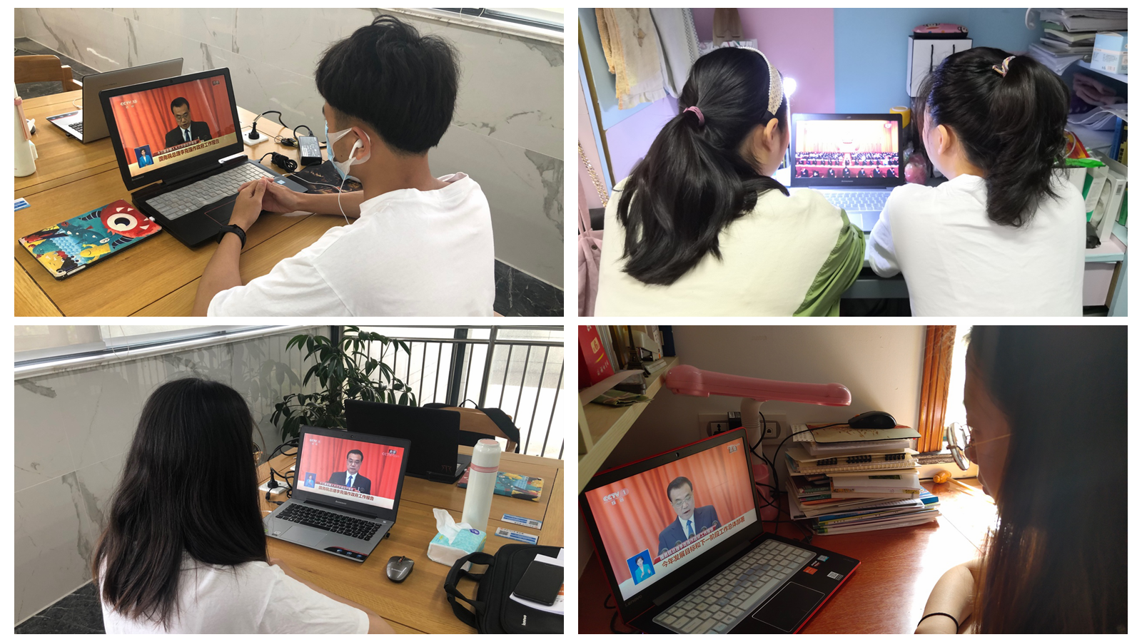 非毕业班的支部学生党员,虽然仍未返校,但也在家中积极参与此次的支部活动。她(他)们表示,观看了全国人大十三届三次会议开幕,倍感自豪,充满信心。面对突如其来的新冠肺炎疫情,以习近平同志为核心的党中央坚强领导,果断决策,团结带领全国各族人民,在短时间内有效遏制了疫情的蔓延,并逐步复工复产复学。这体现了我们中国特色社会主义的制度优势,说明我们走在正确的道路上,在中国共产党的正确领导下,中国无惧任何国内外挑战。用心做好手头的每件小事,我们就一定能够化解危机、战胜困难,在实现中华民族伟大复兴中国梦的进程中不断奋斗!