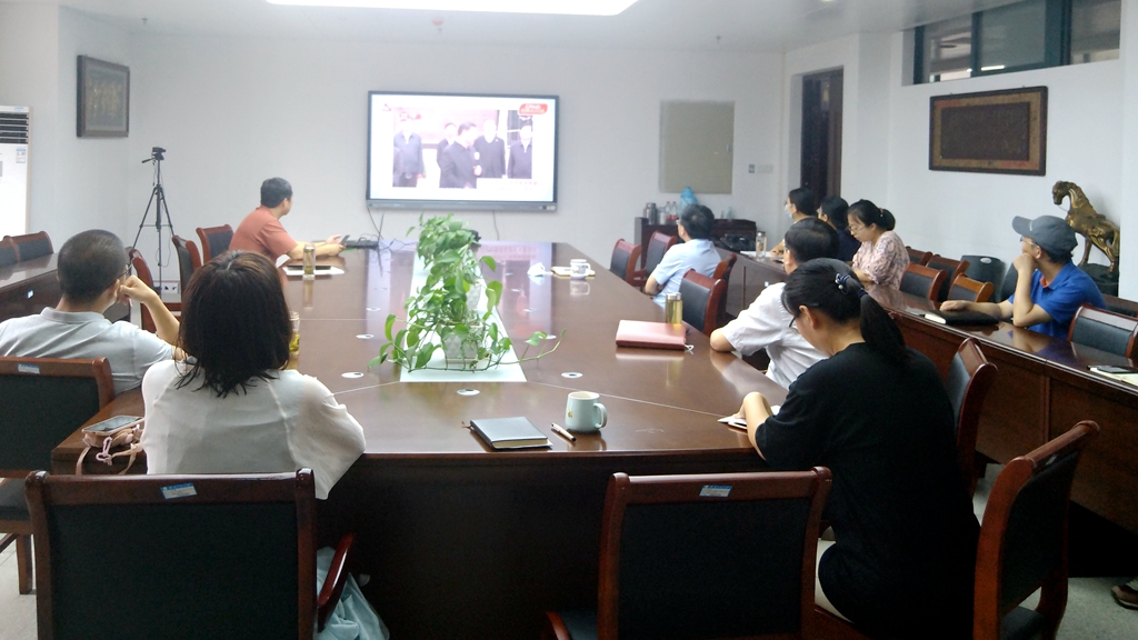 7月1日上午9:00,管理工程学院全体师生党员在线收看了“党旗飘扬,筑牢红色防火墙”--高校党组织战疫示范微党课“七一”专题,学院党政领导、部分教职工党员在学院会议室集中收看,其他师生党员在工作室、在家中在线收看。