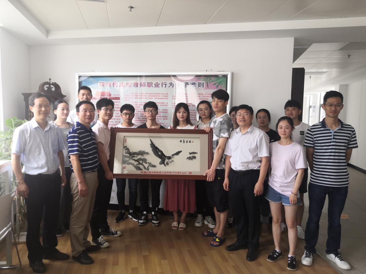“饮其流者怀其源,学其成时念吾师。”因疫情,今年的毕业季没有了往年隆重的毕业典礼,但毕业生对母校的那份爱从未改变。为感谢学院培养,75日上午,受管理工程学院2020届全体毕业生委托,苏卫、王子璇、卓德彬、赵子璇等同学代表回到管理工程学院,向学院领导和辅导员们捐赠毕业纪念品——铁画“雄鹰展翅”,以此表达对学院的眷恋,对老师辛勤工作、谆谆教诲的无尽感激,对学弟、学妹的真心鼓励。