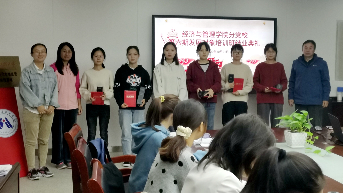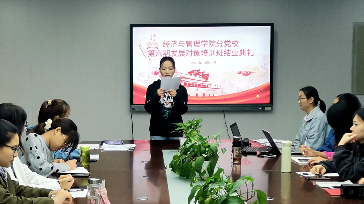 10月21日下午,经济与管理学院分党校第六期发展对象培训班结业典礼在C座818会议室举行,院党委书记邬海量、组织员朱文明及全体培训班学员出席了典礼。典礼由本期培训班班主任张方主持。