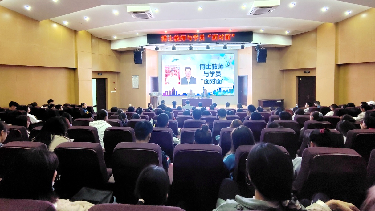 1023日晚18:00经济与管理学院组织第三十一期入党积极分子培训班在C座七楼报告厅参加博士教师与学员“面对面”指导讲座。本次讲座院党委书记邬海量主持,由张云丰和丁一两位博士教师担任主讲人。