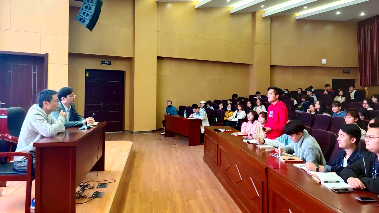 张云丰老师和丁一老师结合自身往的学习经历及心路历程,先后为大家介绍了如何把握大学期间学习和生活的节奏,如何掌握有效学习方法。讲座中学员们积极踊跃,就国内外考研趋势发展,文科生就业是否困难,工作与考研如何抉择,选择好城市还是选择好学校,考虑家庭条件是否选择继续深造,如何提升自我等方面提出了问题,张云丰老师和丁一老师对学生提出的问题进行了现场解答。