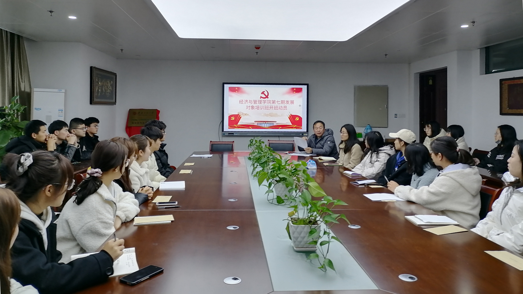 3月5日下午,经济与管理学院分党校在C座818会议室召开第七期发展对象培训班开班动员会。学院党委书记邬海量、组织员朱文明、培训班班主任吴兆克和32名培训班学员参加了动员会。