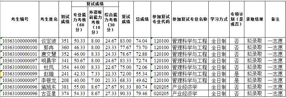 2021年硕士研究生招生复试结果一览表(第一批)