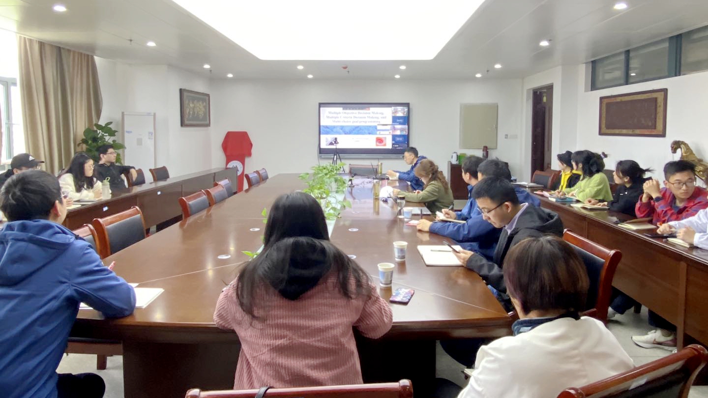 张锦特教授为师生们作了题为“Multiple Objective Decision Making, Multiple Criteria Decision Making, and Multi-choice Goal Programming”的学术报告。他从日常生活需要决策的实际案例出发,引出什么是多目标决策、多准则目标决策,详细解释了在考虑经济效益、社会效益、安全生产与环境保护等多方面的目标情况下,需要用多种标准进行评价方案和优选方案。他将理论与实践相结合,用真实的实践案例证明所提出模型的正确性,展示了多准则目标规划的一些应用和最新发展。