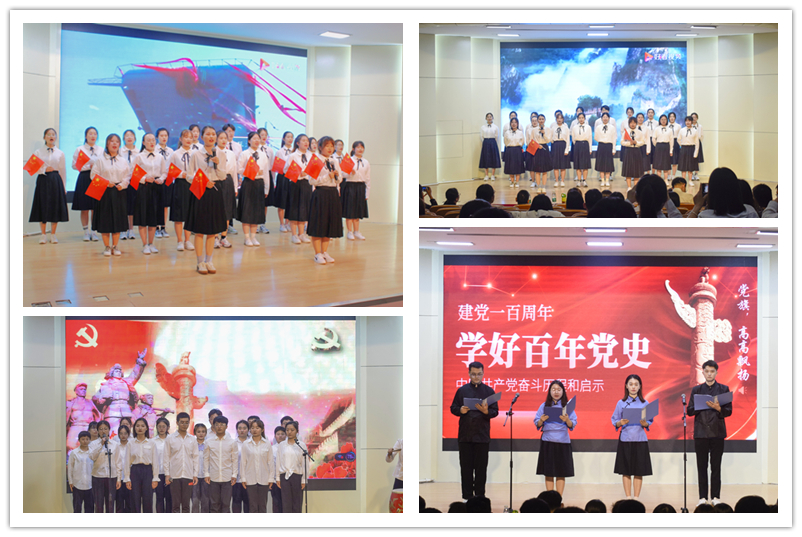 分党校各培训班以小组为单位组队参加了初赛,经过各培训班的选拔,14支队伍站到了决赛的舞台,他们用歌声、舞蹈、朗诵等各种形式讲述党的革命故事、奋斗故事、成长故事,向伟大的党献上诚挚的祝福。鲜红的党旗,经历了100年的洗礼,更加飒爽多娇,庄严的党徽经过100载的锤炼,更加坚如磐石,比赛以诗朗诵《党旗,高高飘扬》拉开序幕。话剧《我的1919》,再现了一百多年前“五四”运动的爱国浪潮;歌曲《我和我的祖国》、《百年红船》、《颂歌献给党》、《新时代》、《中国中国,鲜红的太阳永不落》、《强国一代有我在》,唱出了大学生对党和祖国的祝福,勾起观众们对中国革命峥嵘岁月的回忆;诗朗诵《青春中国》、《我亲爱的祖国》、《中国力量》、《不朽》、《百年红船》抒发了同学们把握青春,不忘初心紧跟时代的脚步,秉持“强国一代”的使命感和责任感。