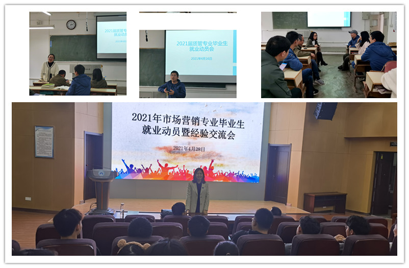 4月28日下午,市场营销系教师党支部联系市场营销系部和市场营销专业学生党支部,在C座七楼报告厅召开2021届市场营销专业毕业生就业动员暨经验交流会。对学生在就业过程中存在的问题做出了相应的解答,鼓励大家去基层锻炼、磨砺,树立正确的就业观,寻找适合自己的人生方向。