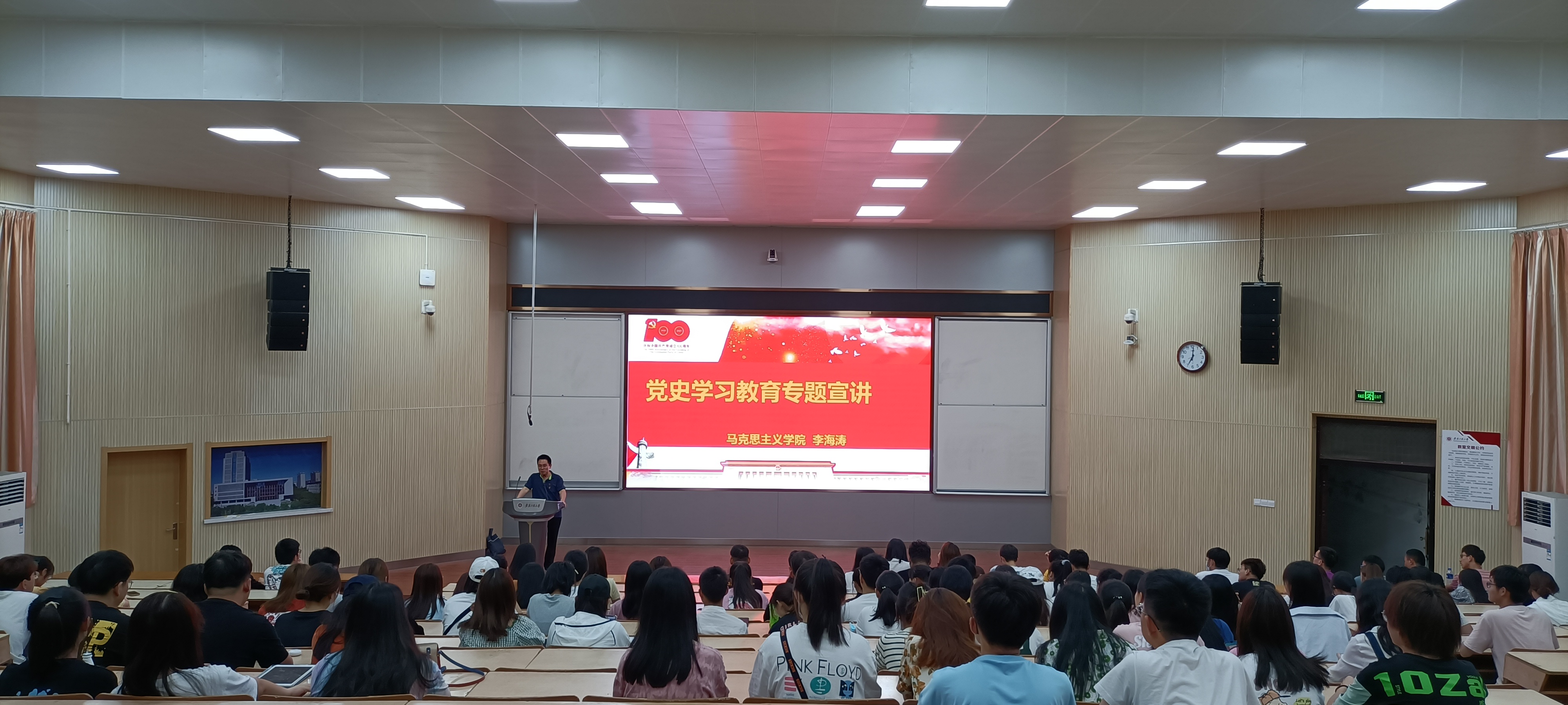开展党史学习教育,是牢记初心使命、推进中华民族伟大复兴历史伟业的必然要求;是坚定信仰信念、在新时代坚持和发展中国特色社会主义的必然要求;是推进党的自我革命、永葆党的生机活力的必然要求。李海涛从引用习近平总书记在党史学习教育动员大会上的讲话开始了此次宣讲,他对党史学习教育进行了具体阐述,号召同学们深入领会习近平总书记关于党的历史的重要论述,充分认识开展党史学习教育的重大意义,深刻把握党史学习教育的重点,学懂弄通做实习近平新时代中国特色社会主义思想,进一步增强“四个意识”、坚定“四个自信”、做到“两个维护”。