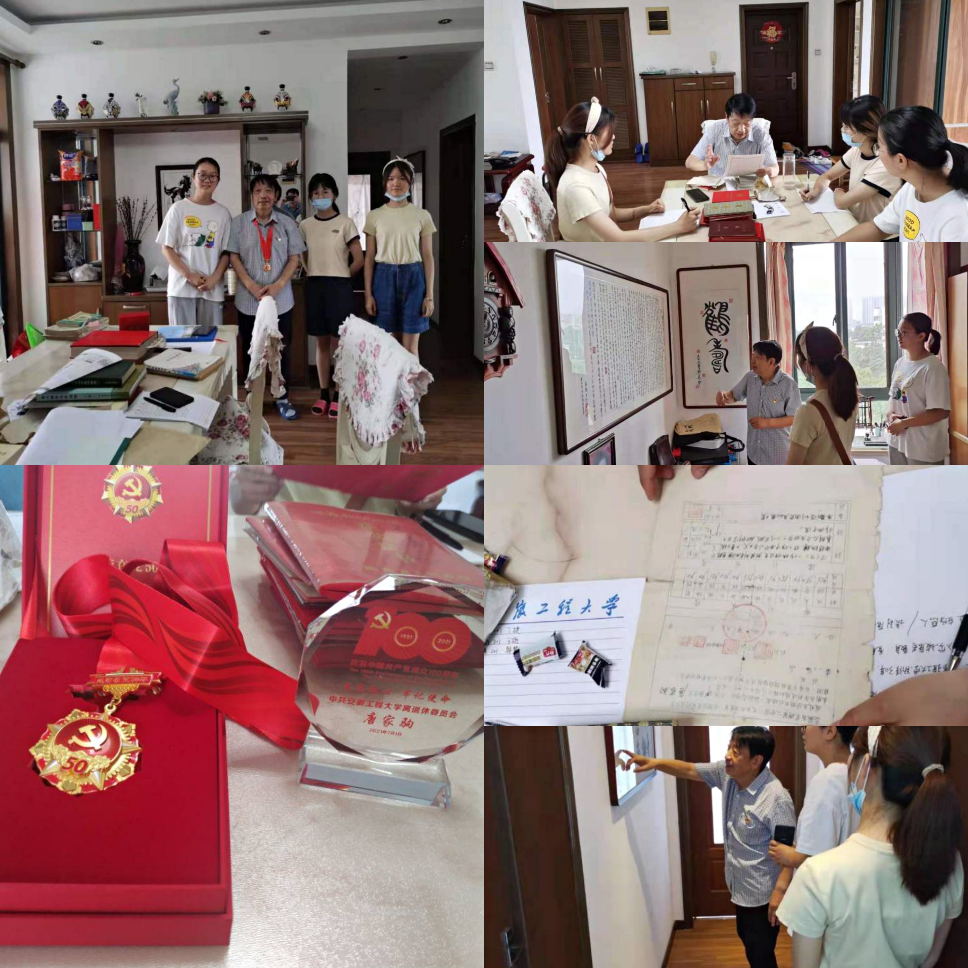 唐教授年近八旬,拥有党龄56年,一辈子为人民服务,教书育人,始终坚定对党的信仰,因此在七一前夕,被颁发“光荣在党50年”纪念章。在交流过程中,唐老讲述了他的求学史、入党史、工作史,以及他耕耘和钻研一辈子的计量管理专业和教材建设工作,饶有兴趣地给队员们回忆了他的青春岁月和响应国家需要投身西部为国育才的点点滴滴,在场的各位无不全神贯注地听着。