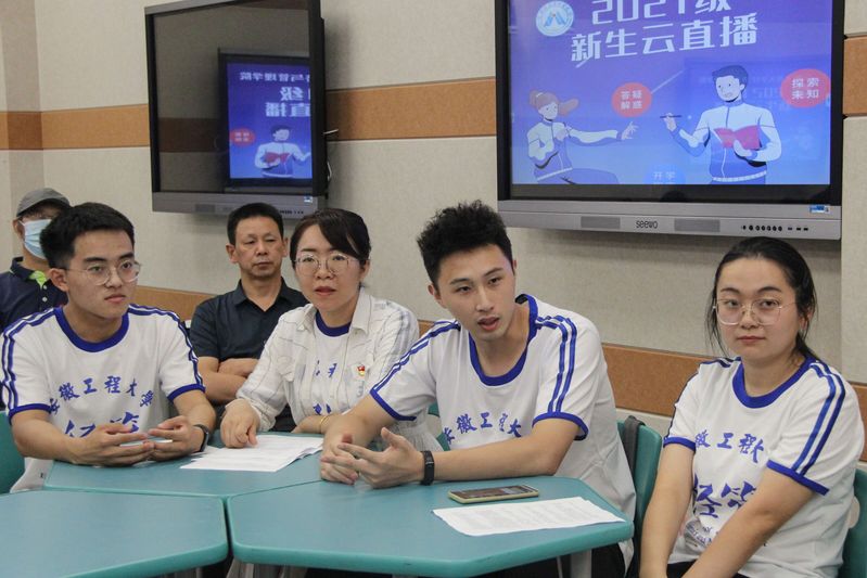 各位新生辅导员做简单的自我介绍和对学生的祝福以及要求。希望同学们能够在未来的四年里保持高昂的劲头,享受校园生活,充实个人生活,严身律己,开拓眼界,提升格局,给自己留下一个不带遗憾的大学生活。辅导员们针对新生感兴趣的问题进行线上师生互动,回答了新生们亟待解答的问题和疑问,帮助新生了解学校,熟悉新生报到流程,提醒新生注意报到路途安全。
