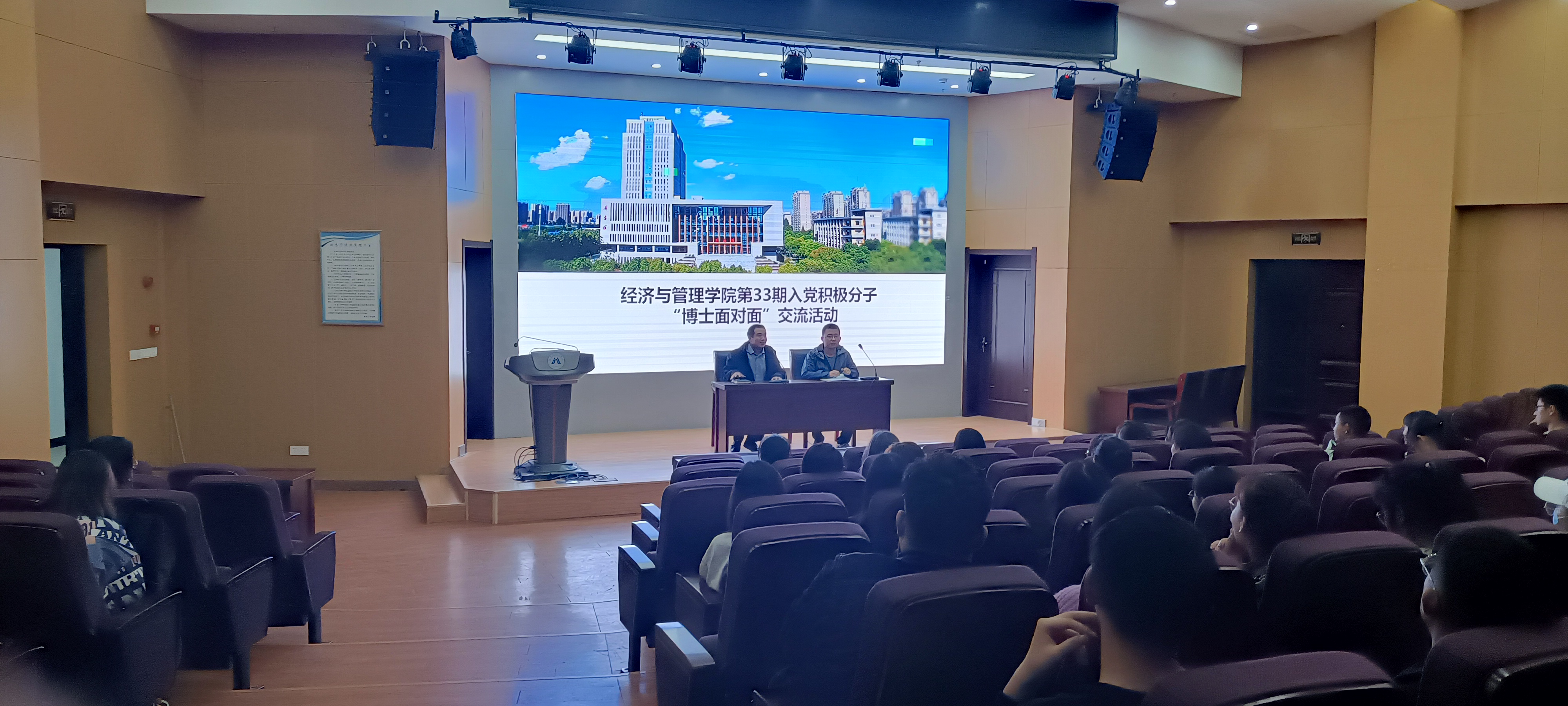 10月11日晚,经济与管理学院分党校第33期入党积极分子培训班在C座七楼报告厅开展了博士 “面对面”交流活动。沈超与张孝琪两位博士教师参加本次交流活动,对同学们的生活、学习、心理等方面进行交流指导。