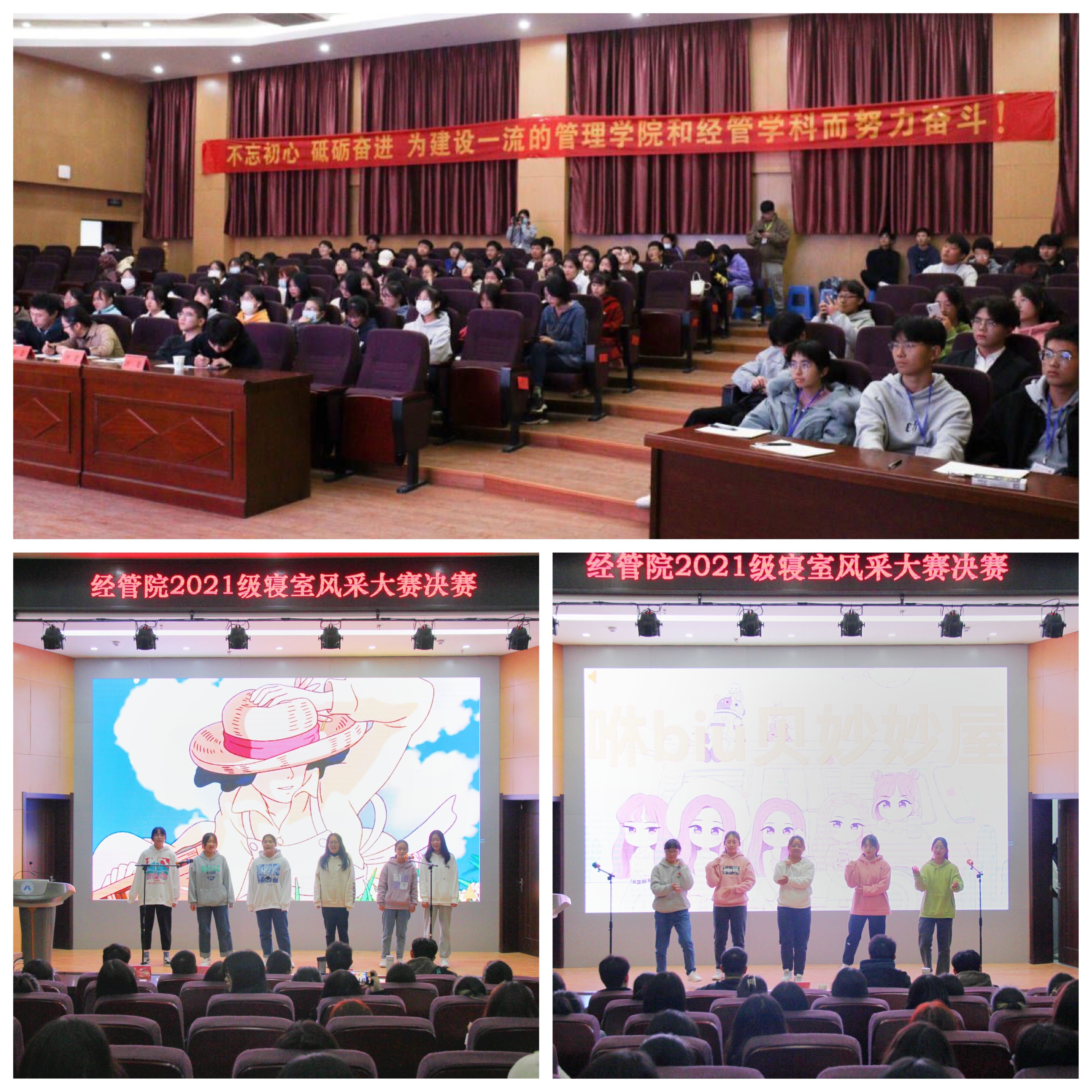 为丰富我院21级新生课余文化生活,加强我院寝室卫生建设,增进舍友之间的互助精神和寝室的集体凝聚力,营造良好的学习生活环境,经济与管理学院于2021年11月13日在C座七楼报告厅举办了以“展靓丽青春,建和谐宿舍”为主题的寝室风采大赛决赛。出席本次活动的嘉宾有21级辅导员高天宇老师、徐博老师,院学生会主席团成员夏磊,前心理权益部负责人周游,以及20级新生寝室风采大赛冠军雷奕中,21级新生代表观看了比赛。