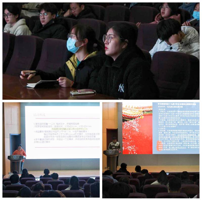 组织部负责人详细介绍了支部定级工作强调智慧团建录入和校团委工作手册抽查工作等相关事宜要严格按照规定执行。组织部志愿者着重介绍了学习党的十九届六中全会精神主题团日活动的相关事宜,并对严格遵循具体要求递交团日活动材料作了说明青年发展部负责人对各团支部在最近的工作中要深入开展“一二·九”运动86周年主题教育系列活动进行了布置。