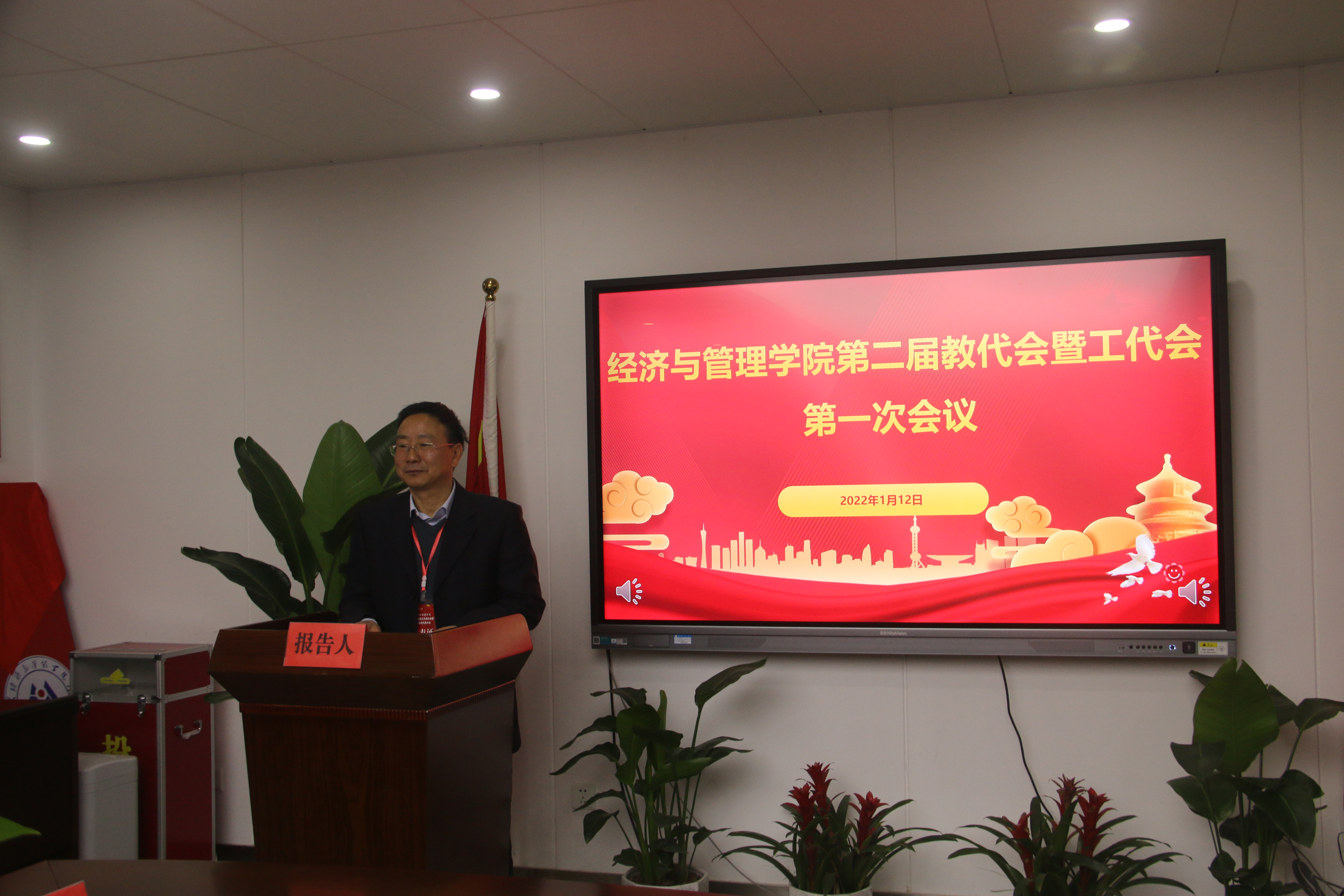 院长龚本刚作题为《把握时代新使命 聚力内涵新发展 朝着“国内知名省内领先”的经济与管理学院建设目标而努力奋斗》的工作报告,报告回顾了过去五年来学院取得的成就,分析了学院发展中存在的困难与不足,提出了今后五年的奋斗方向,并对今后五年的发展目标和主要工作任务做出了展望。报告求真务实,实事求是,鼓舞人心,催人奋进。