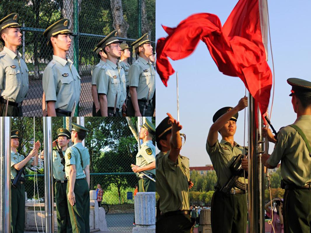 学院严格遵守疫情防控要求,在升旗仪式开始之前,有序指导全体学生在规定时间和地点完成列队等候。在全体师生的注视下,英姿煞爽的国旗护卫队出旗,现场奏响起《义勇军进行曲》,五星红旗高高升起。全体成员行注目礼并唱国歌,此刻望着冉冉上升的国旗,内心充满着激动与震撼。从列队到升国旗的全过程,在场师生时刻保持着严肃与庄严。
