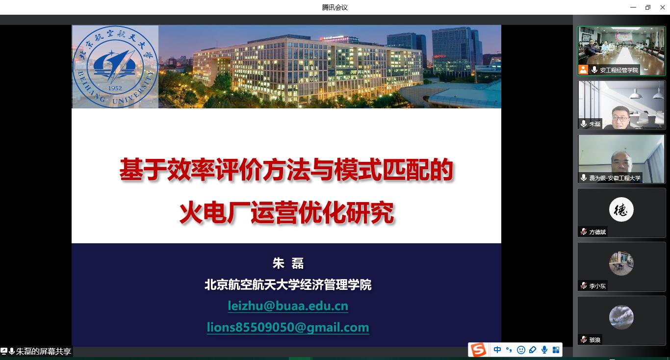 朱磊教授作了题为《基于效率评价方法与模式匹配的火电厂运营优化研究》的学术报告,报告中,朱教授从燃煤电厂有效利用燃料以提高运行效率的重要性出发,提出一种基于改进的加权方向距离模型和模式匹配的煤炭管理模型,并利用机组日运行数据的效率评价结果建立运行策略库,从配煤、煤炭输入和负荷分配三个角度来改进机组的节能潜力。接着,朱教授以一个燃煤电厂的四台机组日常运行数据进行案例分析,指出该模型可以为电厂的运行管理提供有效的决策支持,解决燃煤电厂在技术升级遇到瓶颈时如何提高运行效率的困境。